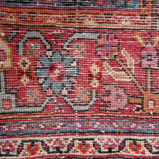 縁を取り巻く花柄が特徴的な、イランのマライエル絨毯。