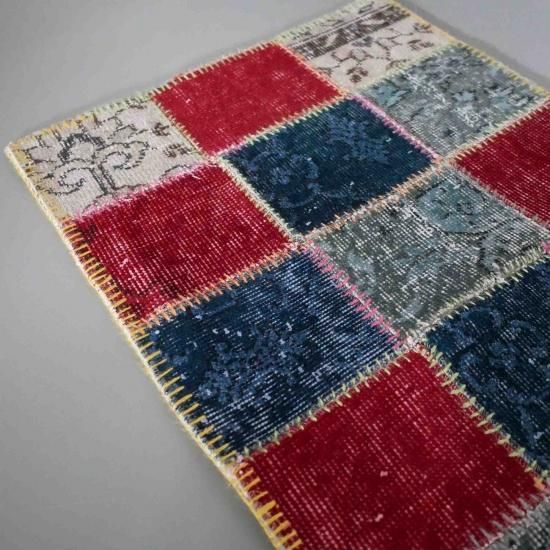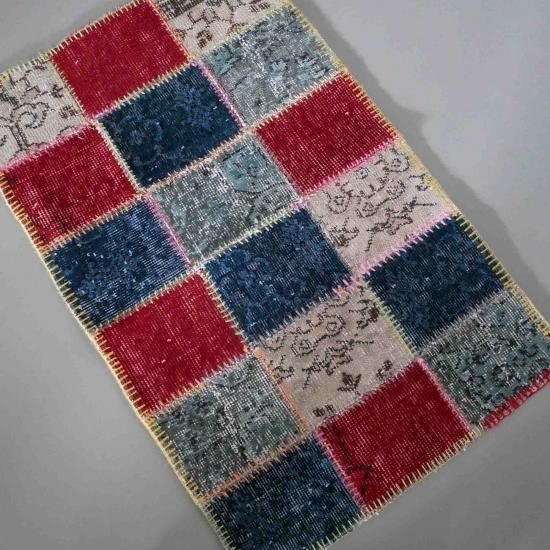 実際に使われていたアンティークラグの状態の良い部分をつなぎ合わせてリメイクした1枚。