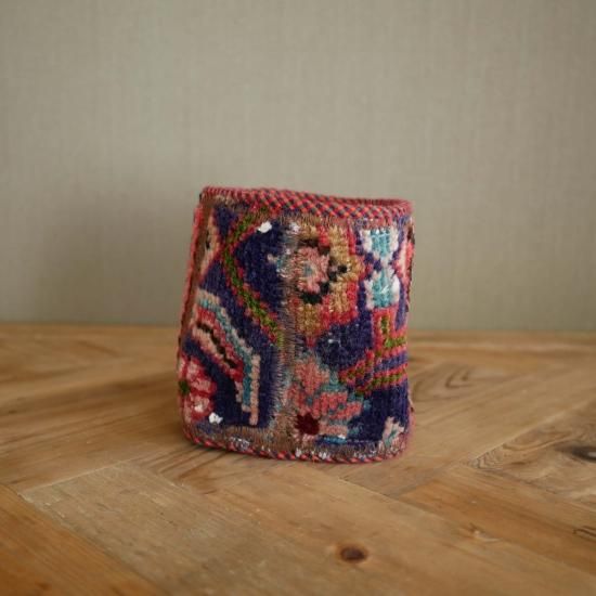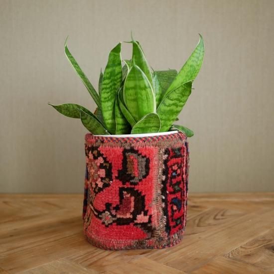 ハンドメイドの1点物のギャッベをリメイクして作られたプランツポットは、もちろん1点物。