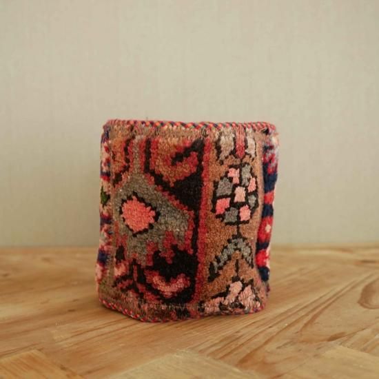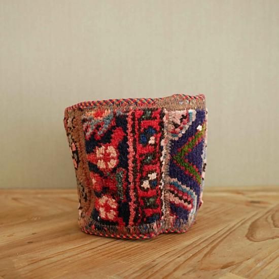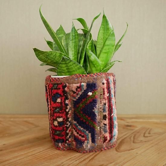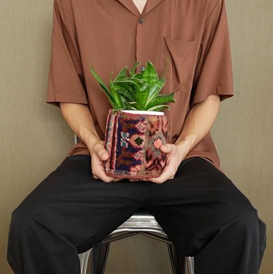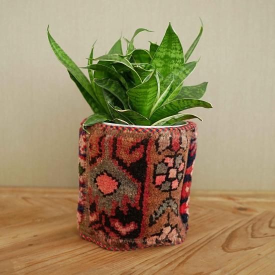 ハンドメイドの1点物のギャッベをリメイクして作られたプランツポットは、もちろん1点物。