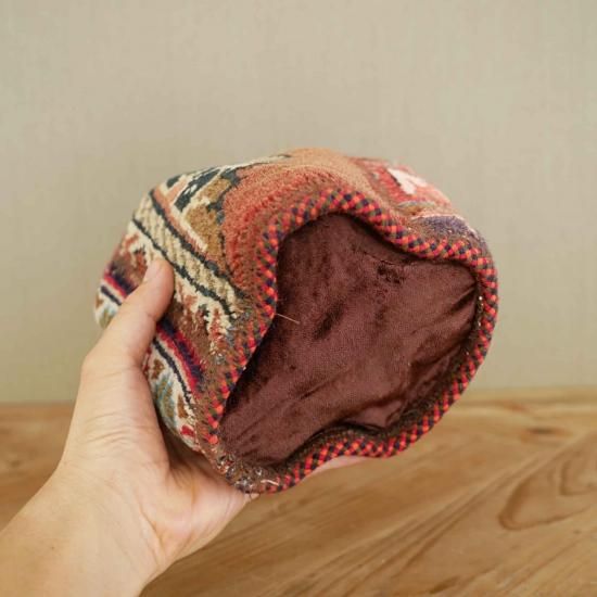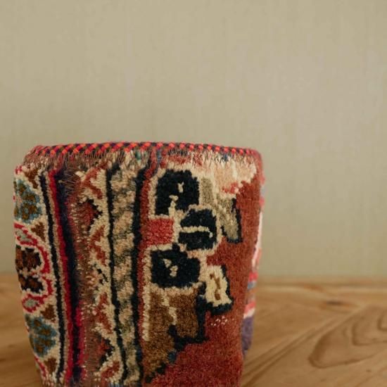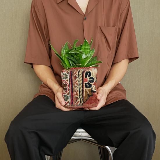 ハンドメイドの1点物のギャッベをリメイクして作られたプランツポットは、もちろん1点物。