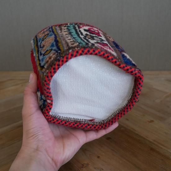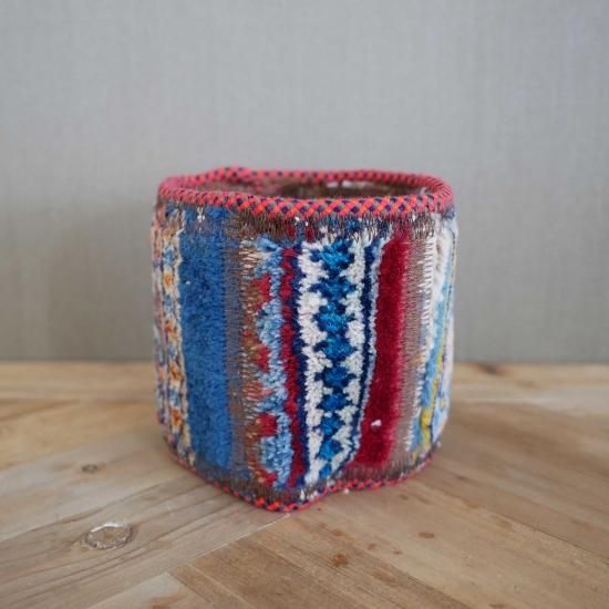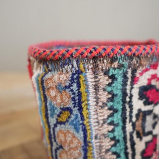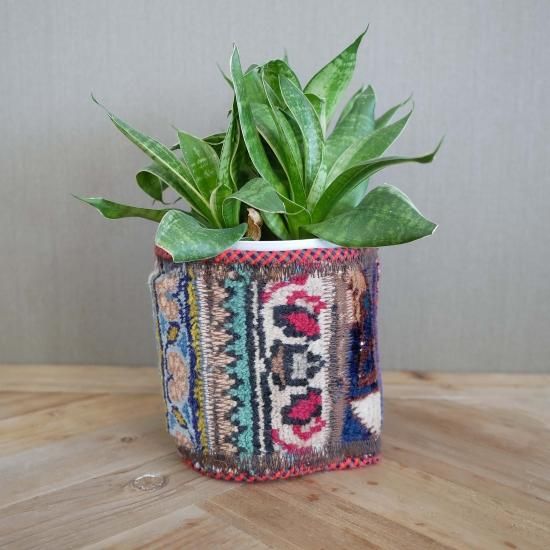 ハンドメイドの1点物の絨毯をリメイクして作られたプランツポットは、もちろん1点物。