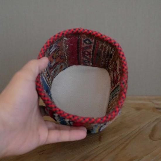 ハンドメイドの1点物の絨毯をリメイクして作られたプランツポットは、もちろん1点物。