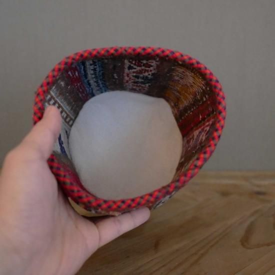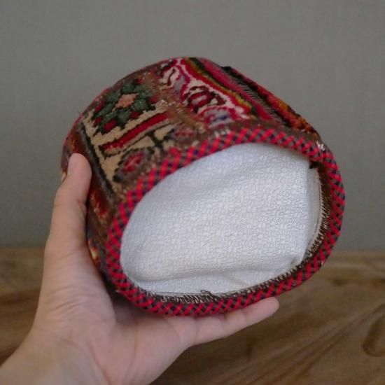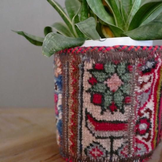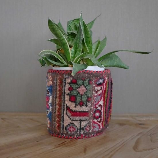 ハンドメイドの1点物の絨毯をリメイクして作られたプランツポットは、もちろん1点物。