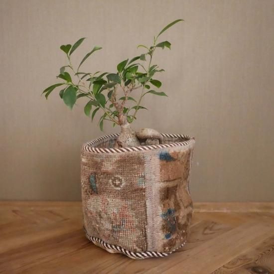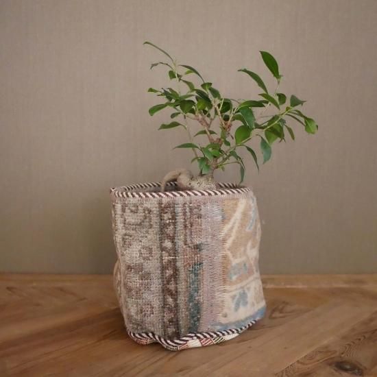 ハンドメイドの1点物の絨毯をリメイクして作られたプランツポットは、もちろん1点物。