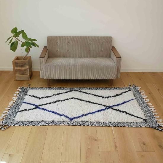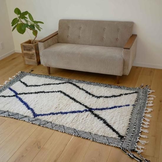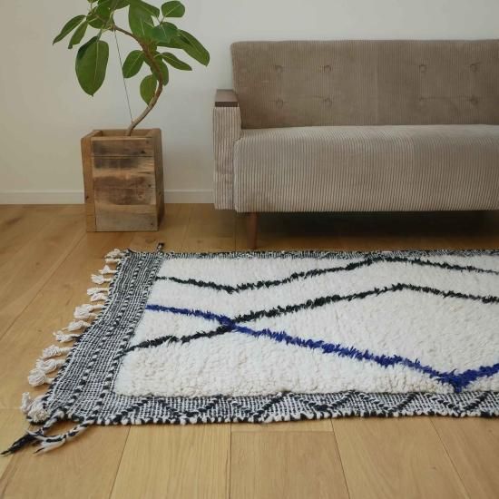 ザナフィというモロッコで織られる毛足のなラグとベニワレンを融合させたデザイン。
