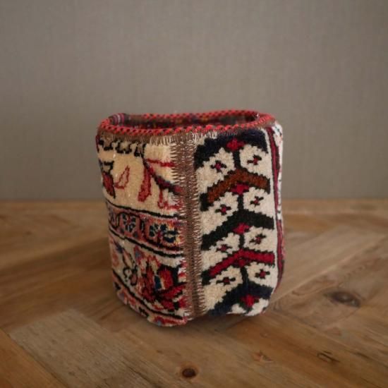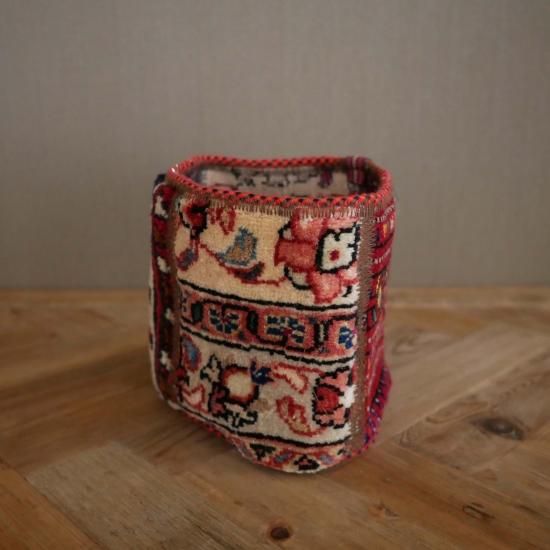 ヴィンテージラグをリメイクして作られた、プランツポット