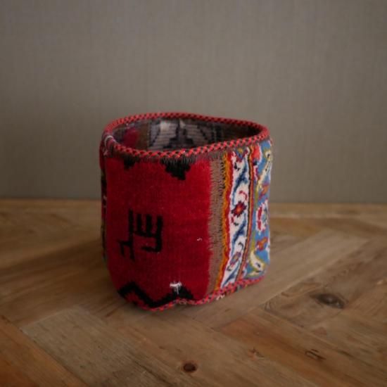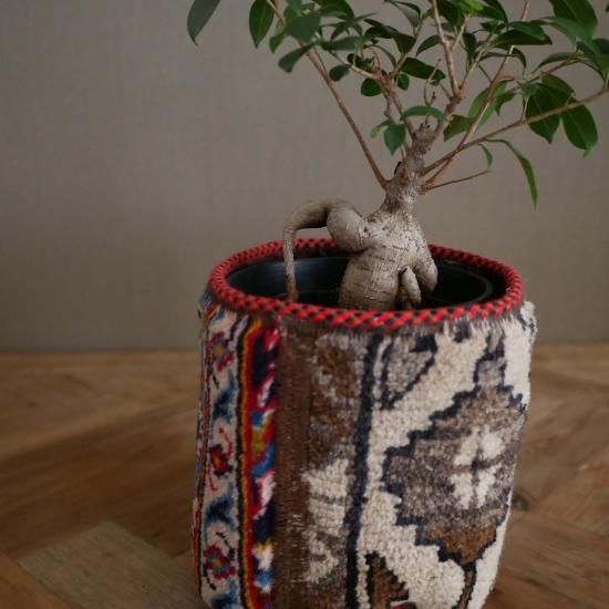 ハンドメイドの1点物の絨毯をリメイクして作られたプランツポットは、もちろん1点物。