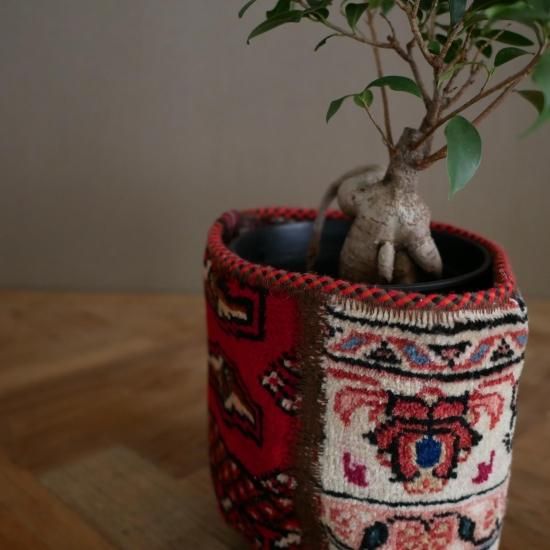 ハンドメイドの1点物の絨毯をリメイクして作られたプランツポットは、もちろん1点物。