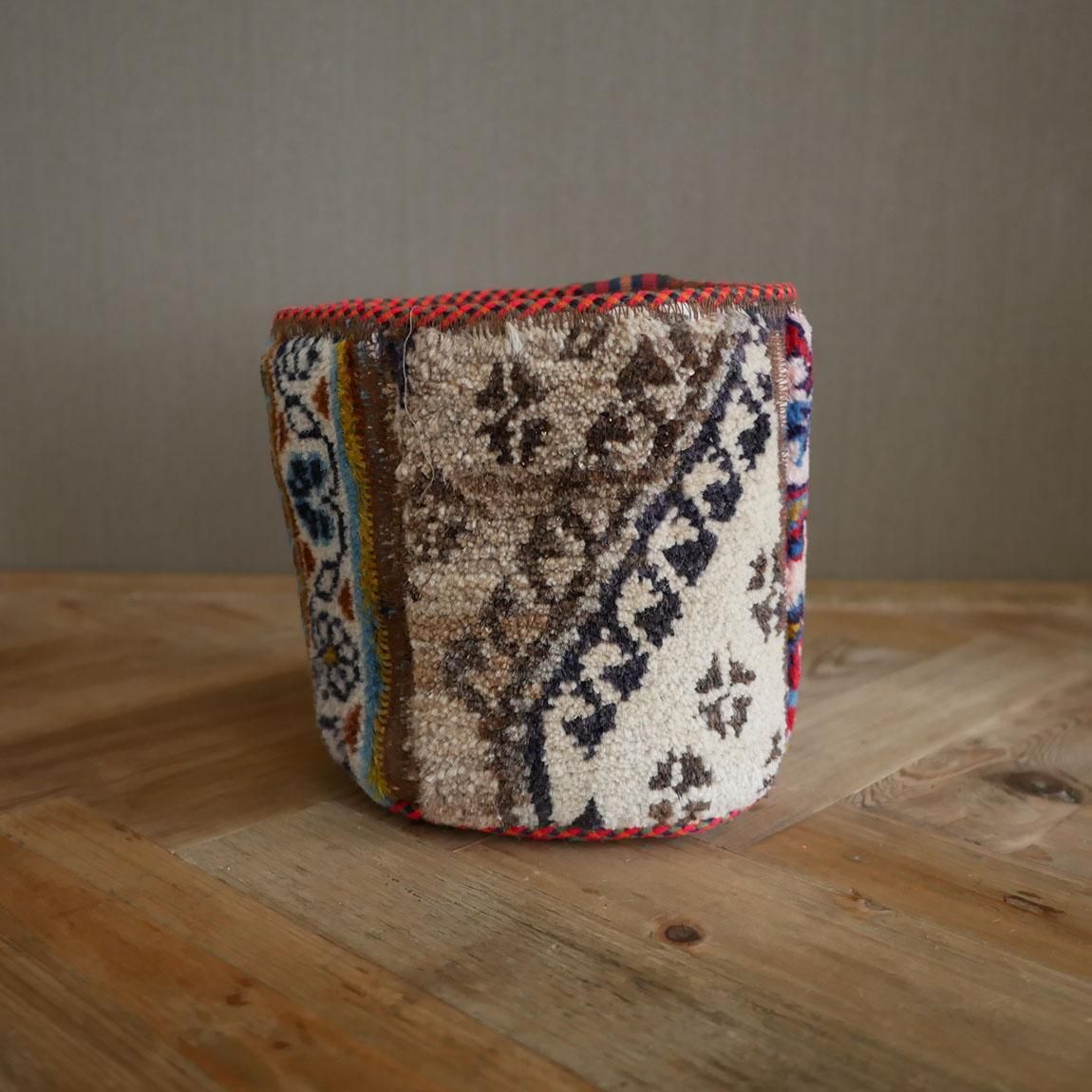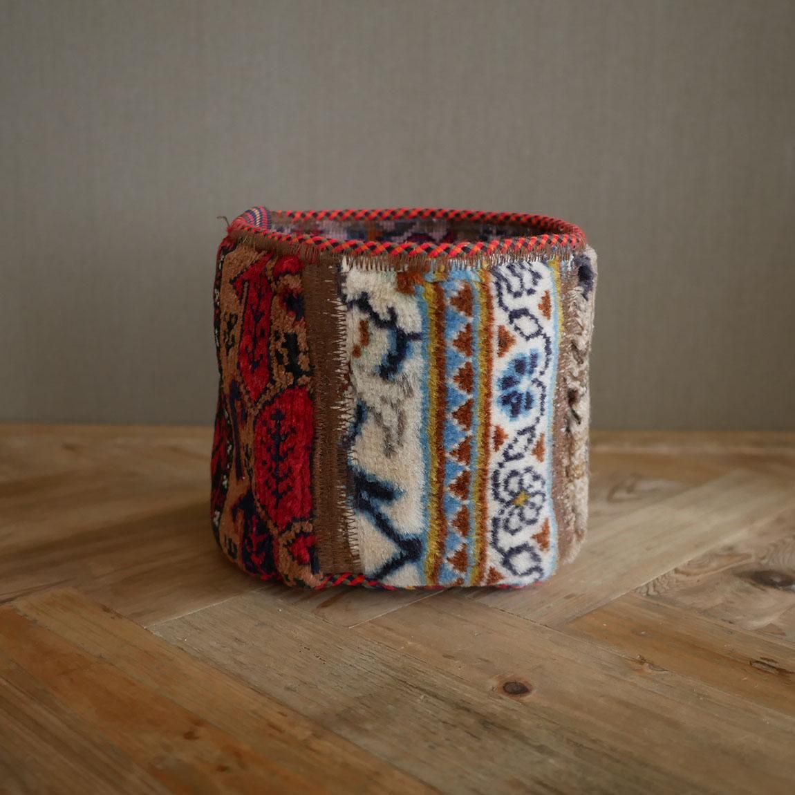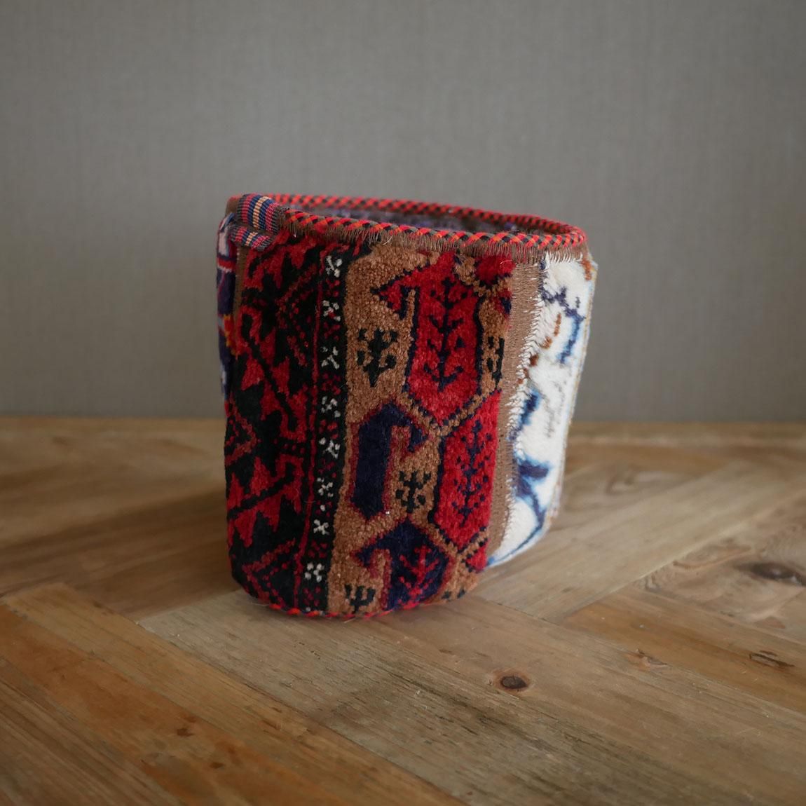 ハンドメイドの1点物の絨毯をリメイクして作られたプランツポットは、もちろん1点物。