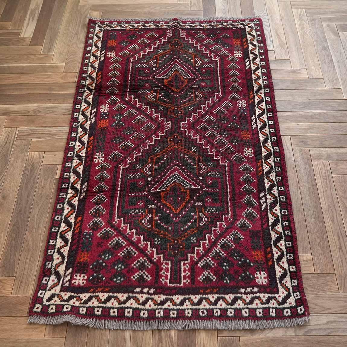 イランの南西部シラーズ地方で織られた代表的な赤の絨毯。