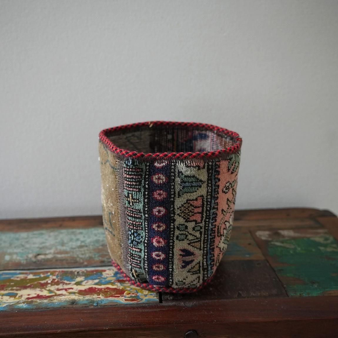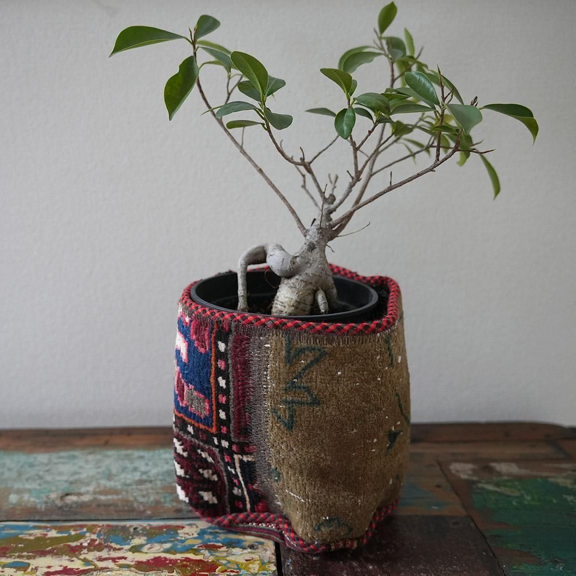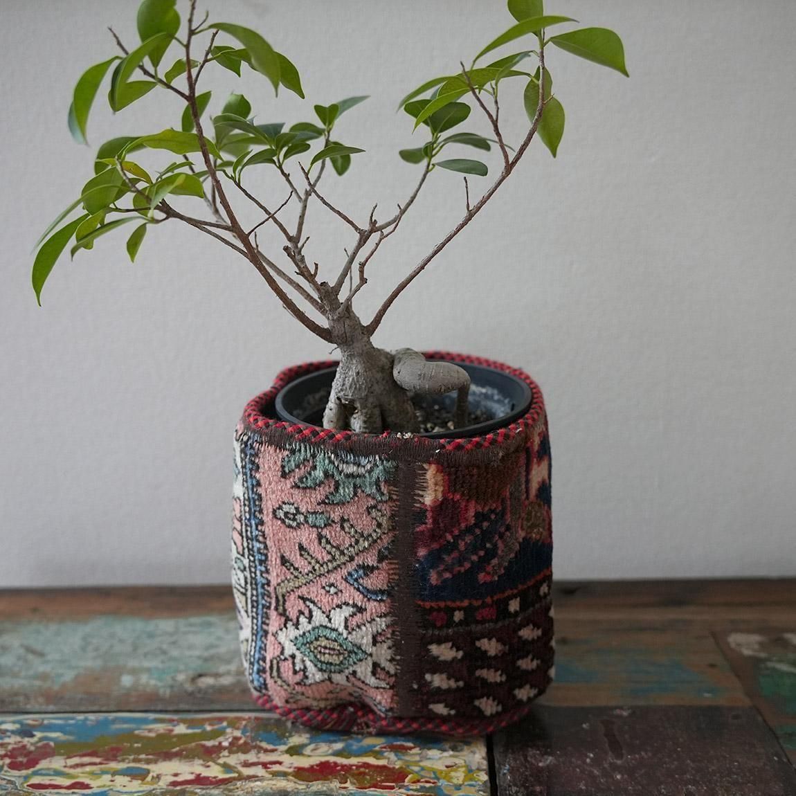 ハンドメイドの1点物の絨毯をリメイクして作られたプランツポットは、もちろん1点物。