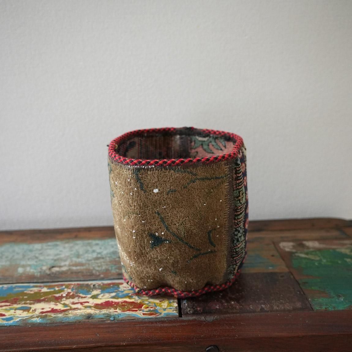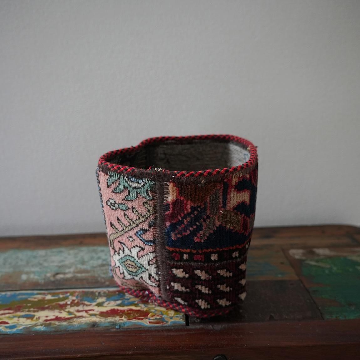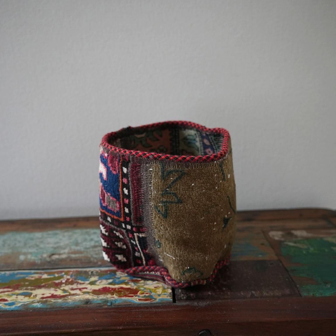 ハンドメイドの1点物の絨毯をリメイクして作られたプランツポットは、もちろん1点物。