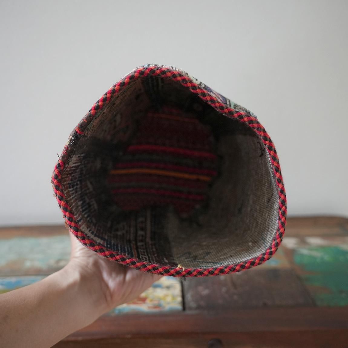 ヴィンテージラグをリメイクして作られた、プランツポット