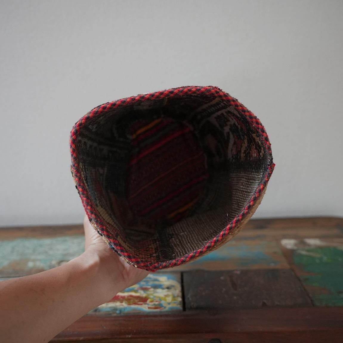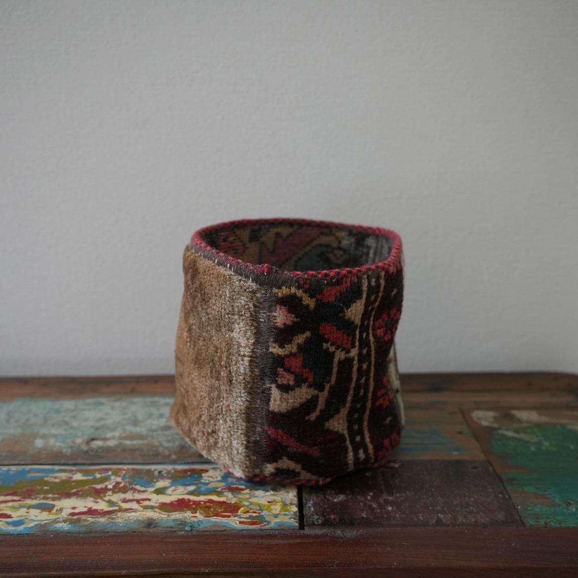 ハンドメイドの1点物の絨毯をリメイクして作られたプランツポットは、もちろん1点物。