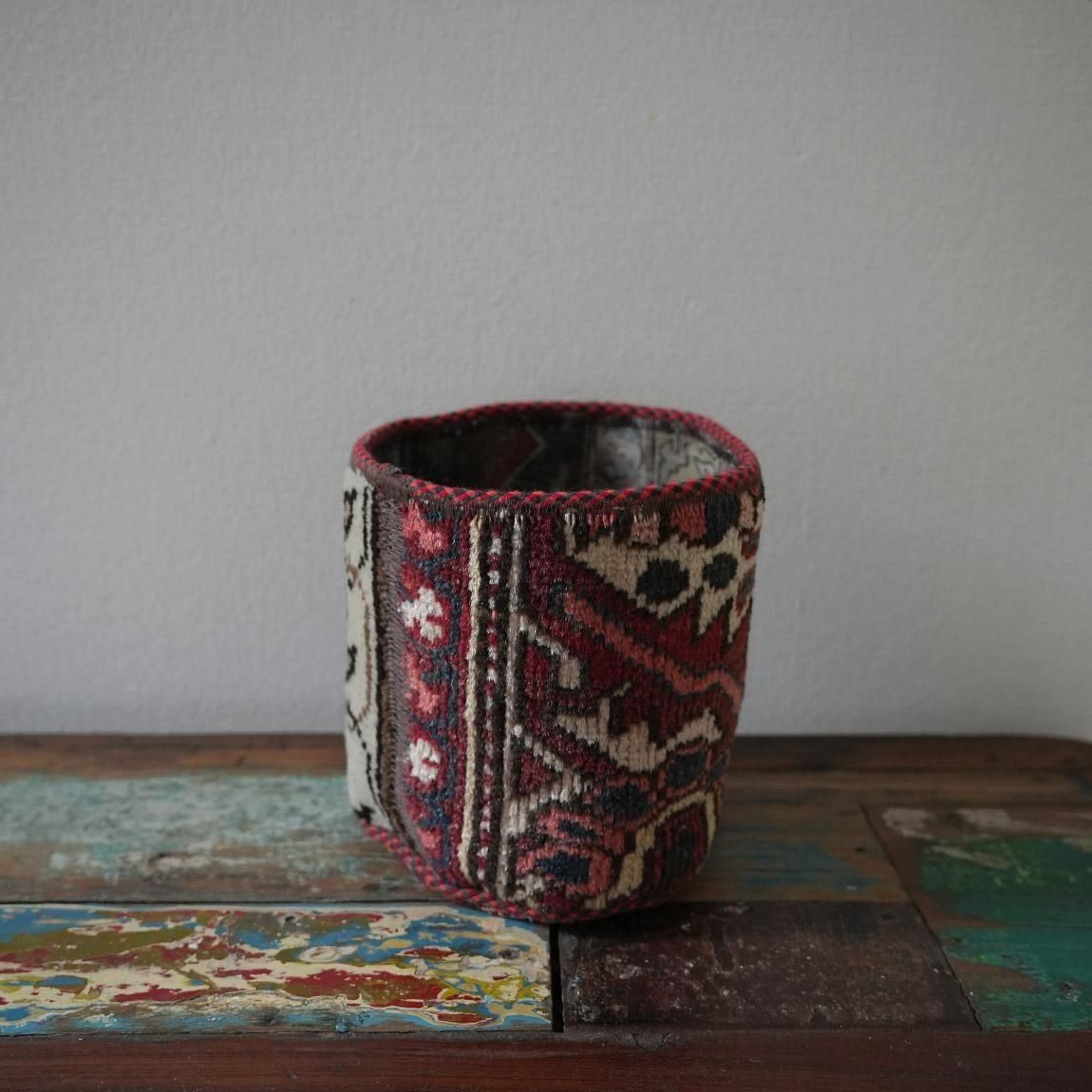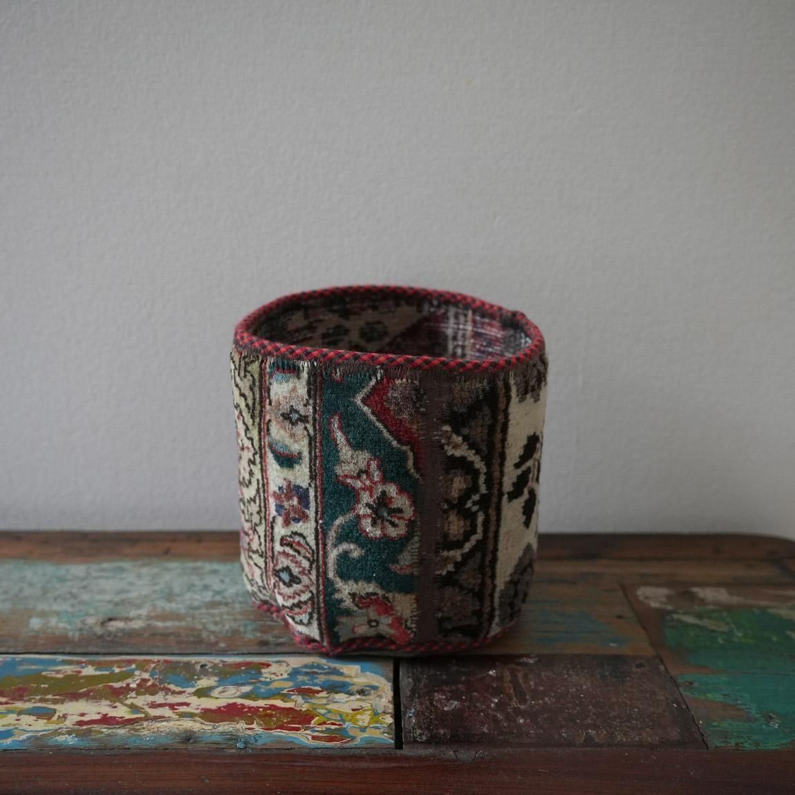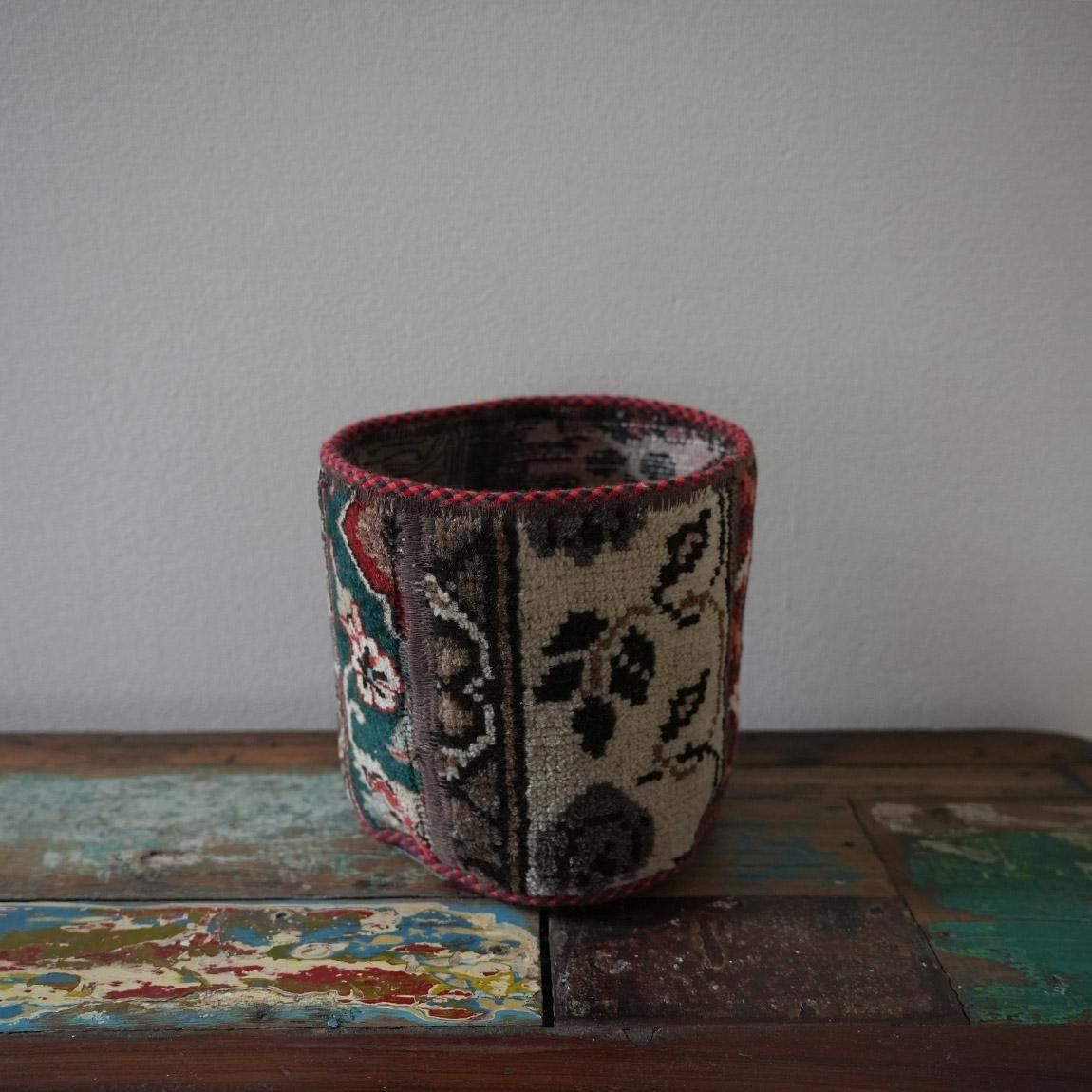 ハンドメイドの1点物の絨毯をリメイクして作られたプランツポットは、もちろん1点物。