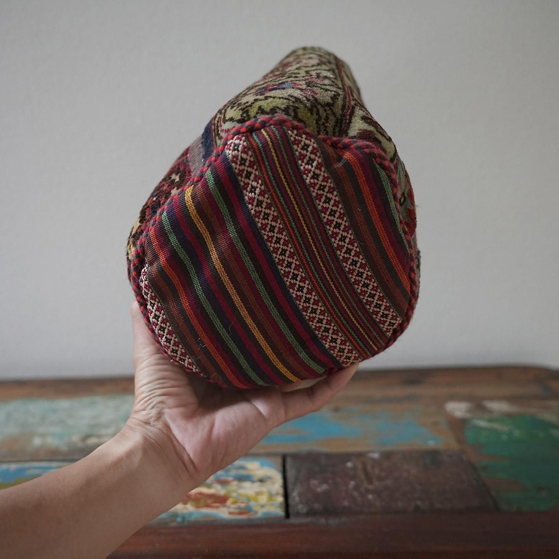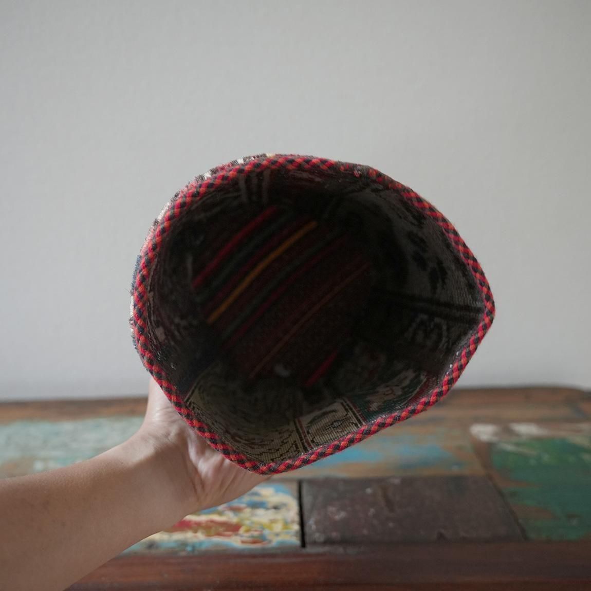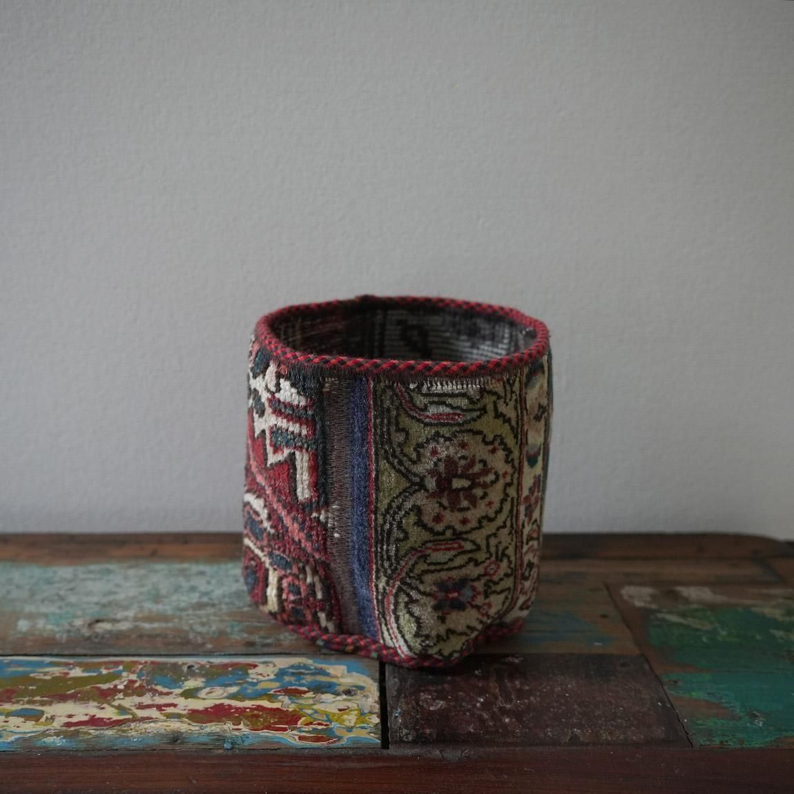 ハンドメイドの1点物の絨毯をリメイクして作られたプランツポットは、もちろん1点物。