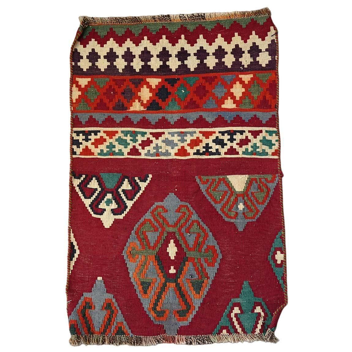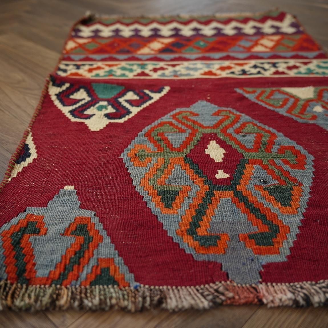 大きいヴィンテージキリムをリメイクし、日常の暮らしに取り入れやすい小さめサイズに仕立てました。