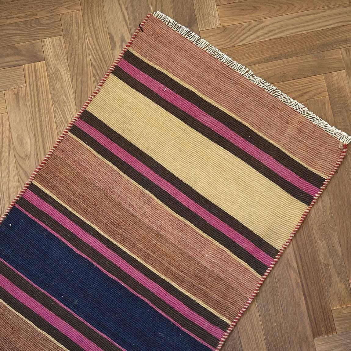 大きいヴィンテージキリムをリメイクし、日常の暮らしに取り入れやすい小さめサイズに仕立てました。