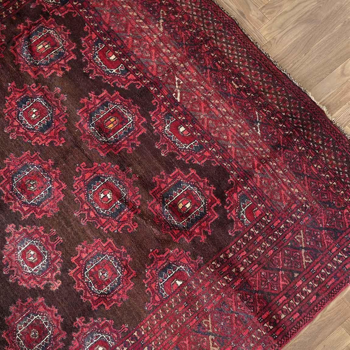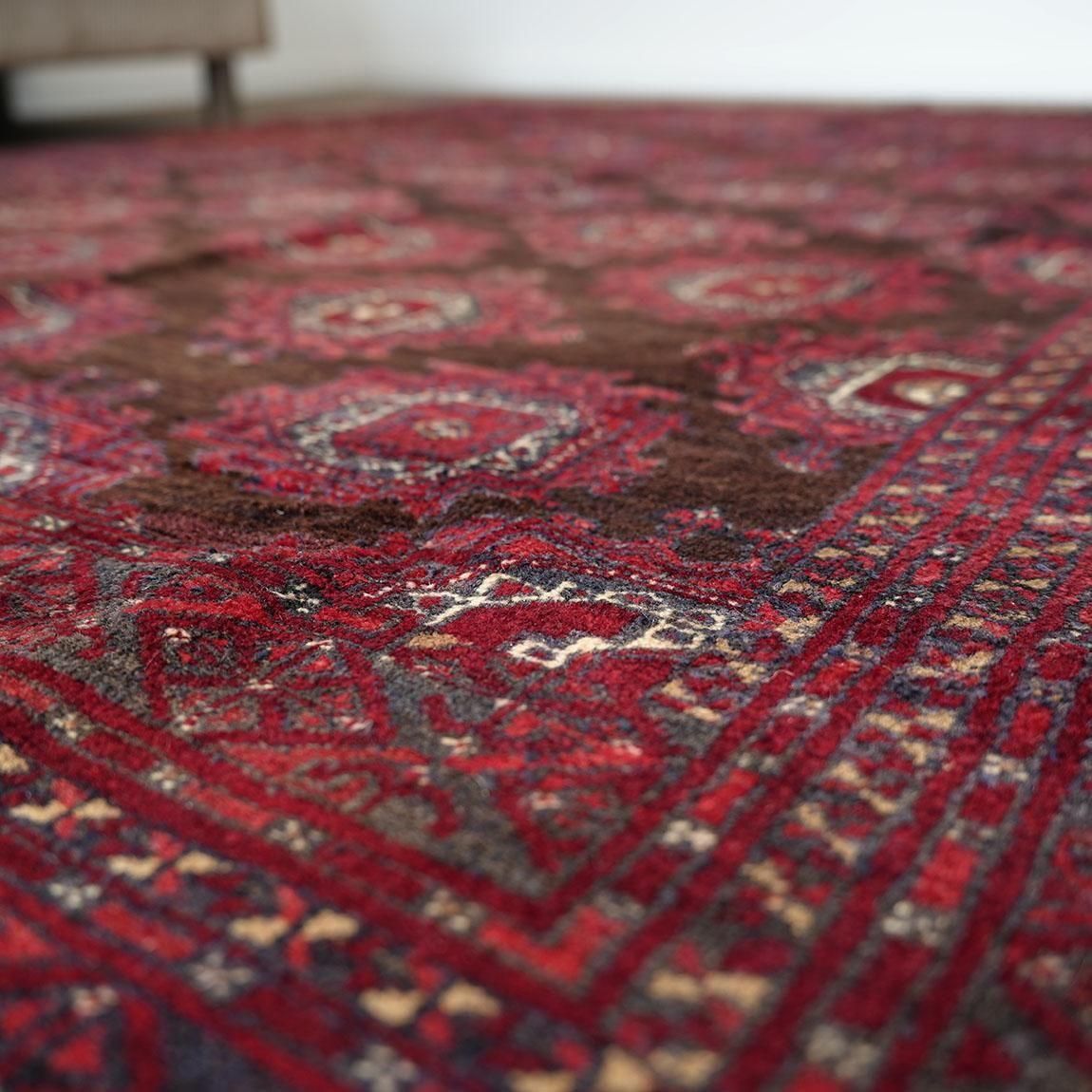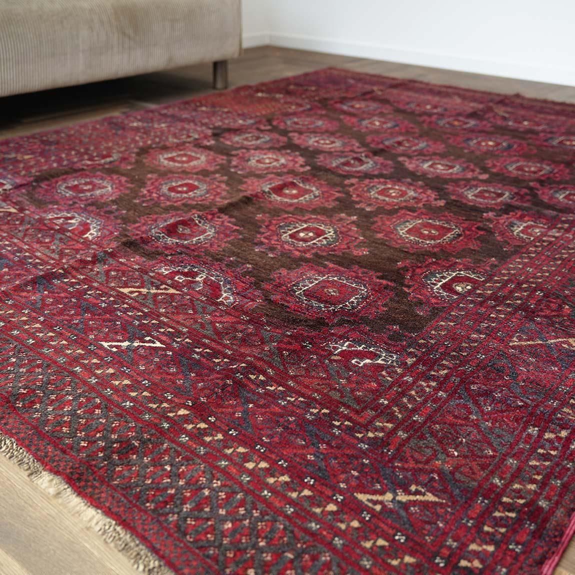 センターには部族紋章のギュル模様を反復して使用されているのがトルクメン絨毯の特徴です。
