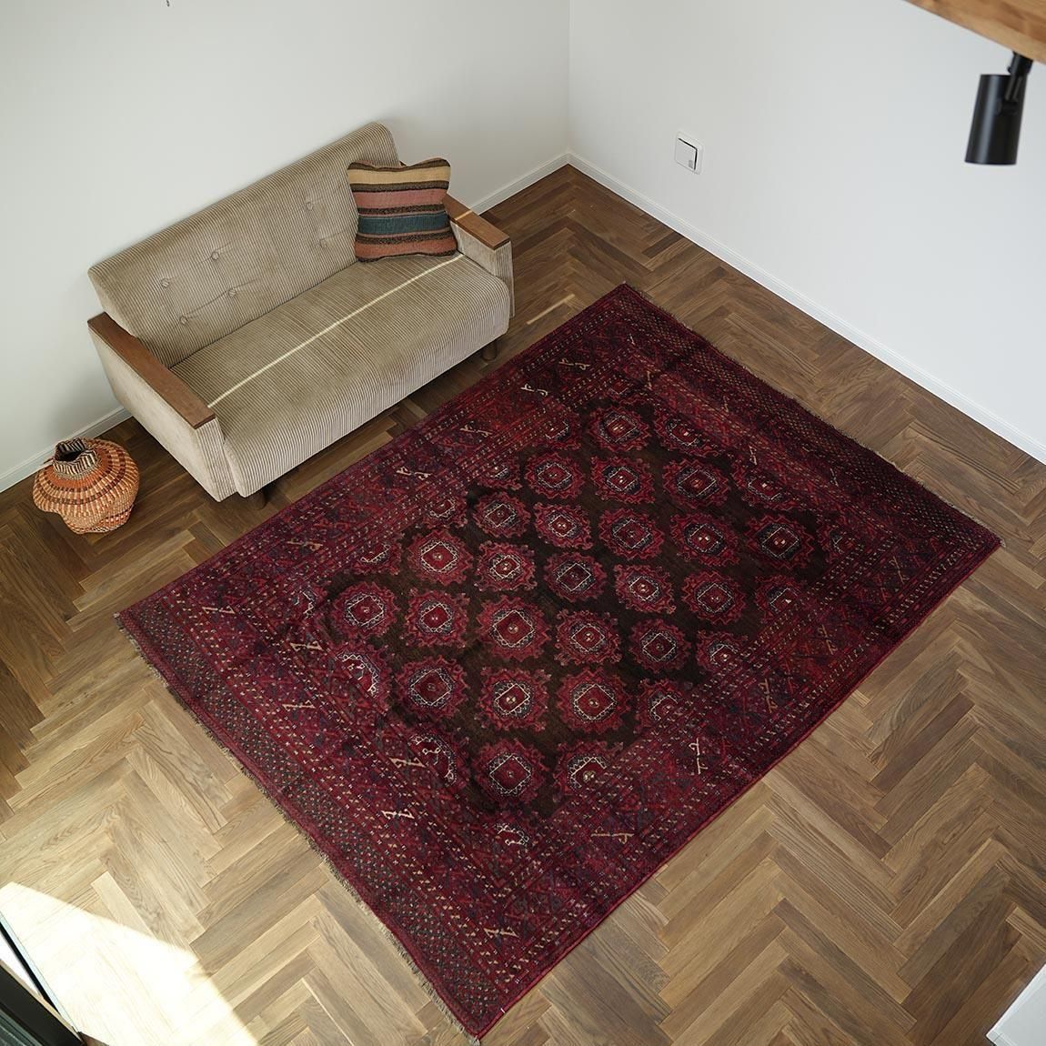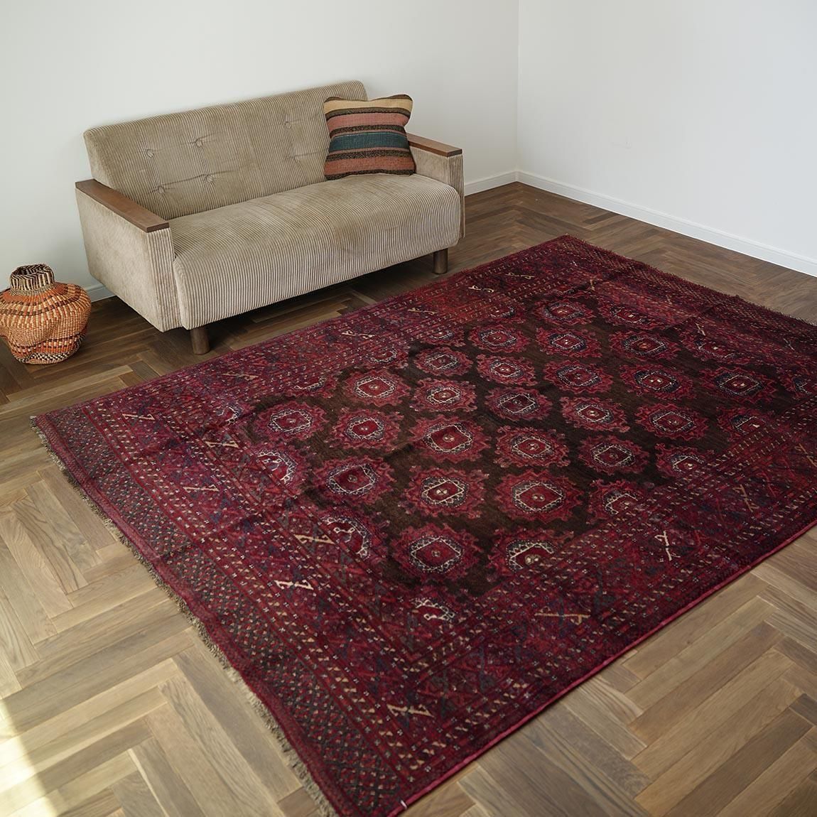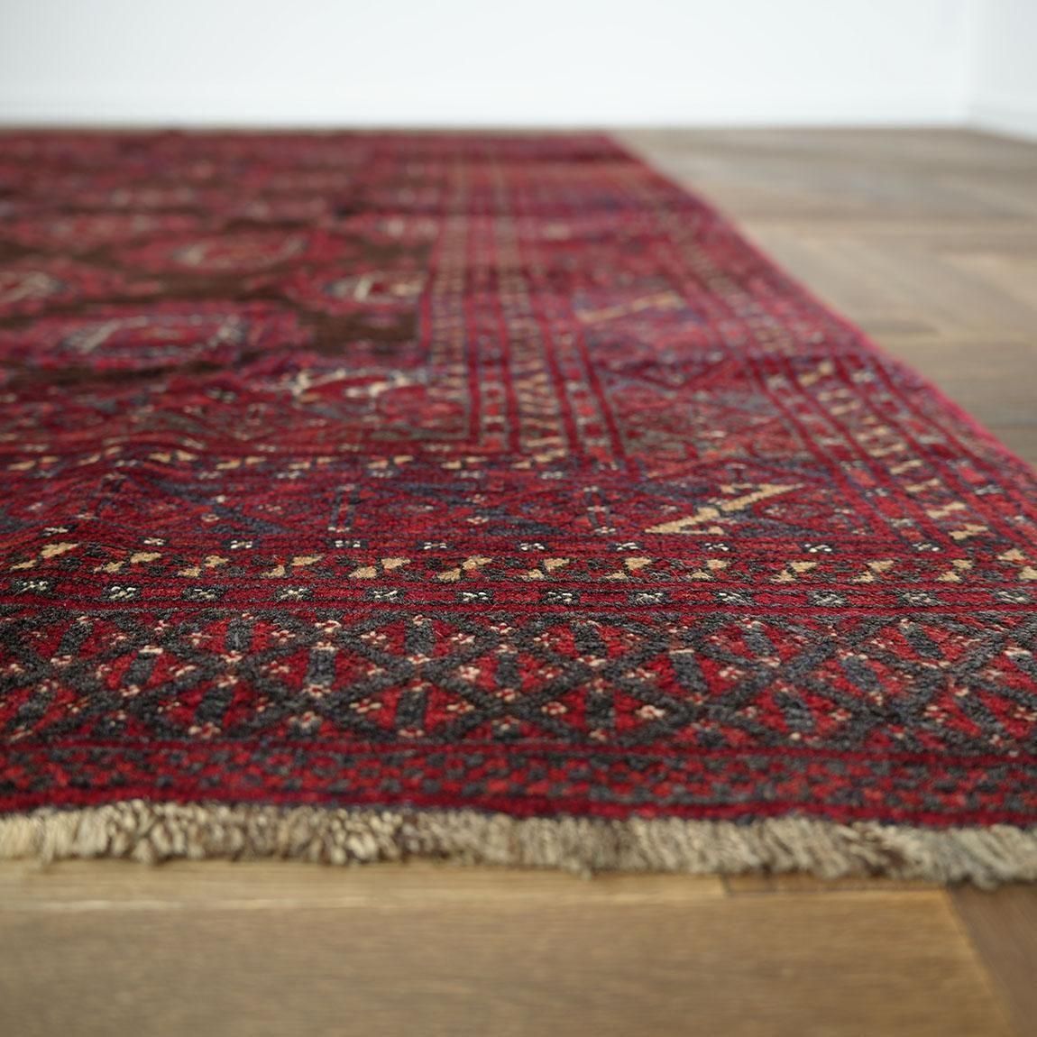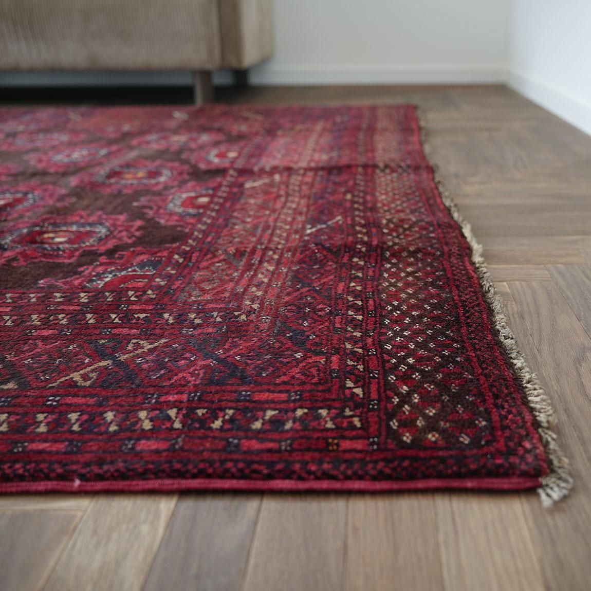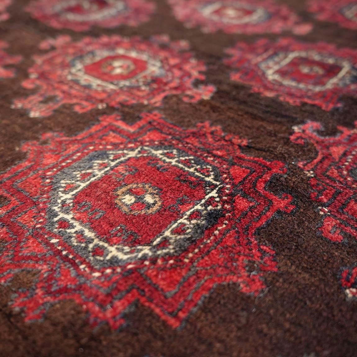 赤をベースに、落ち着いた茶色をアクセントとして用いたトルクメン・サルークラグです。