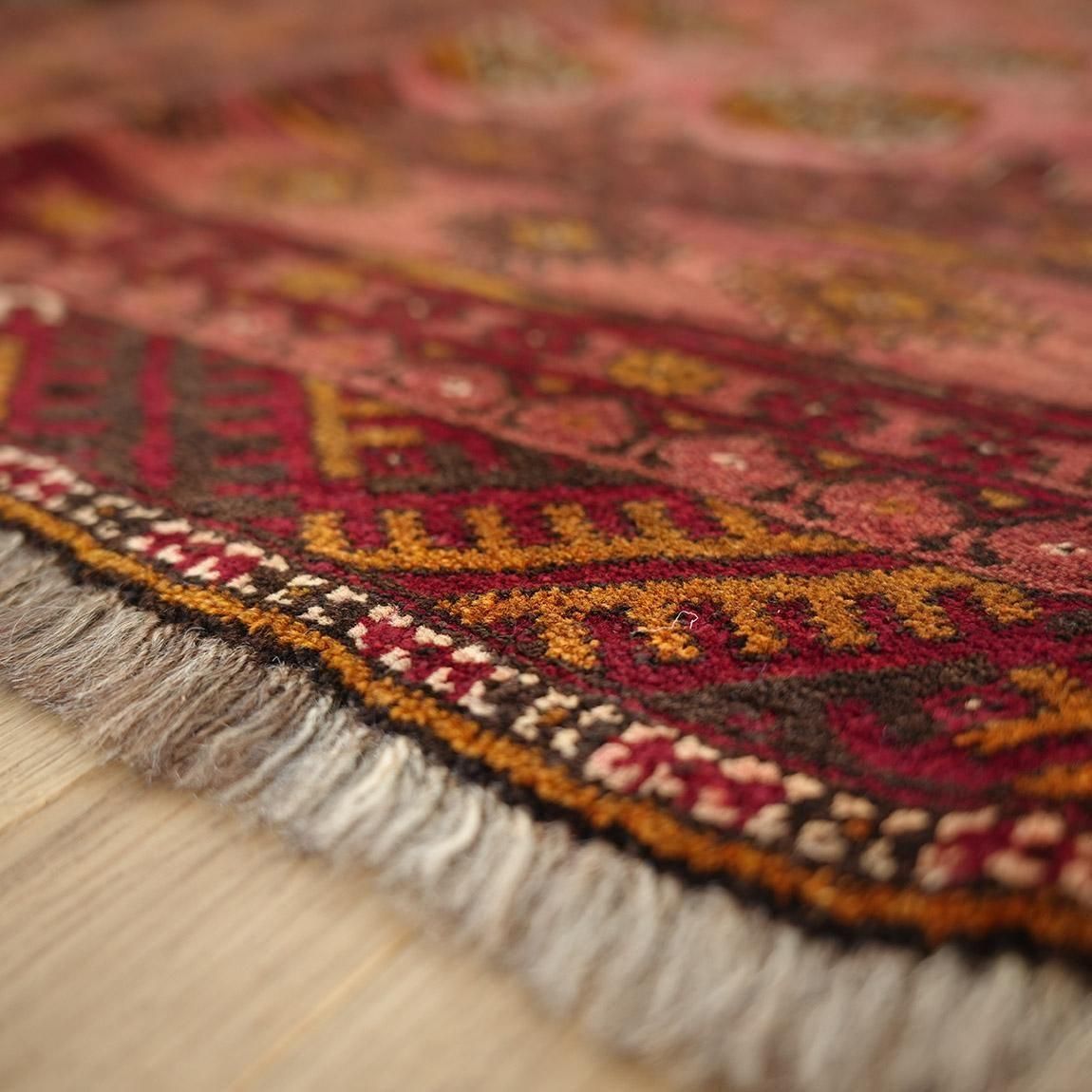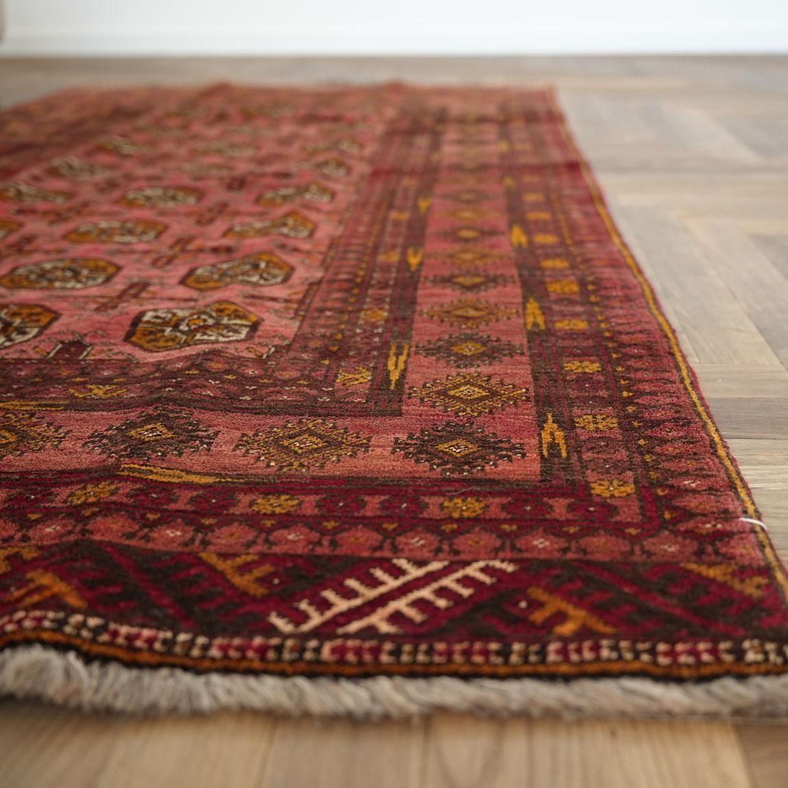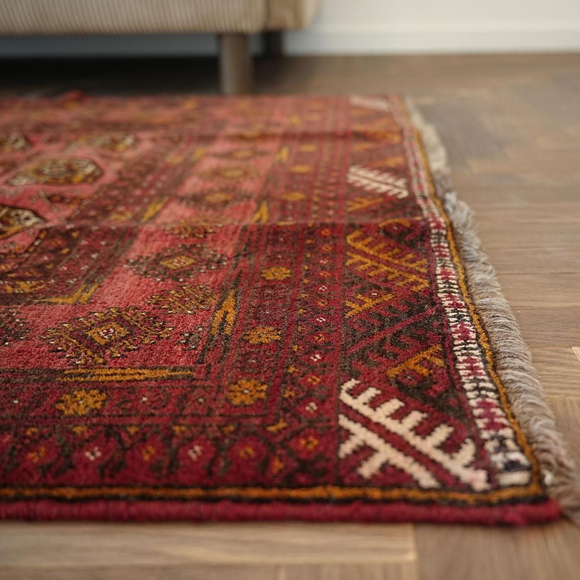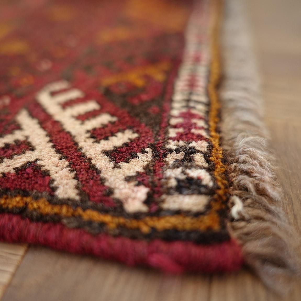 いくつもの赤を巧みに使い分け、繊細に織り上げられたトルクメンラグ。