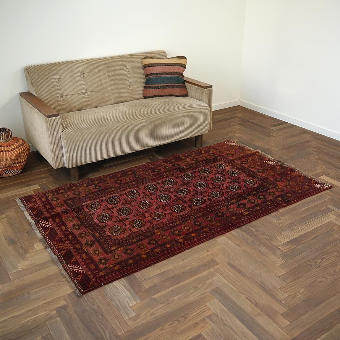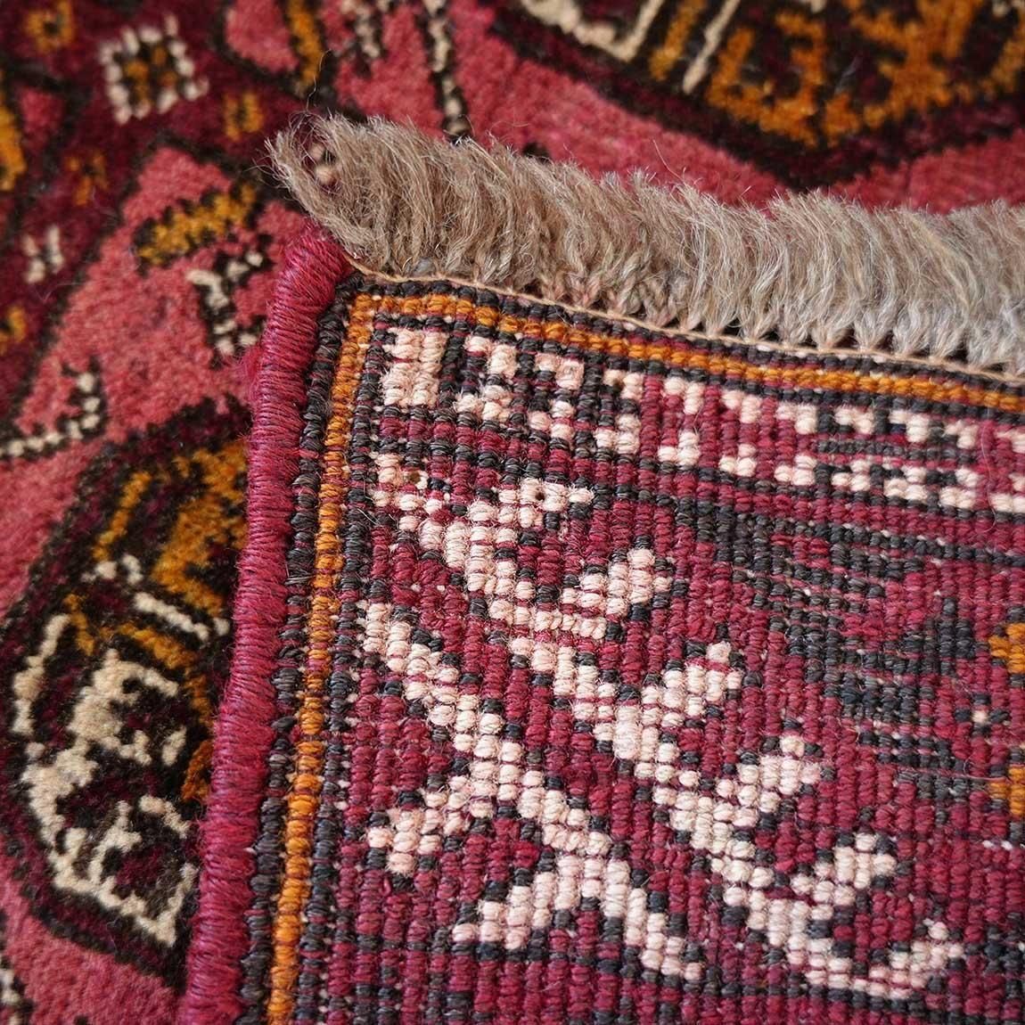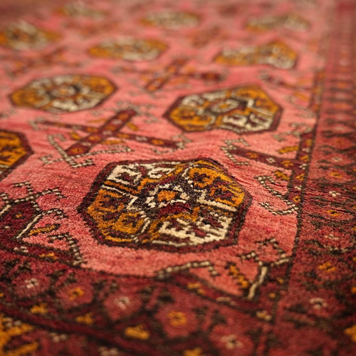 いくつもの赤を巧みに使い分け、繊細に織り上げられたトルクメンラグ。