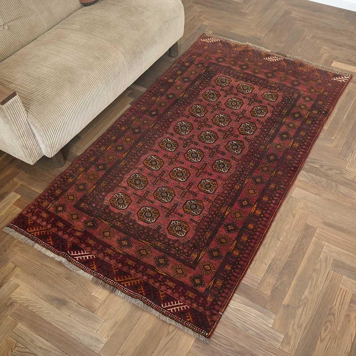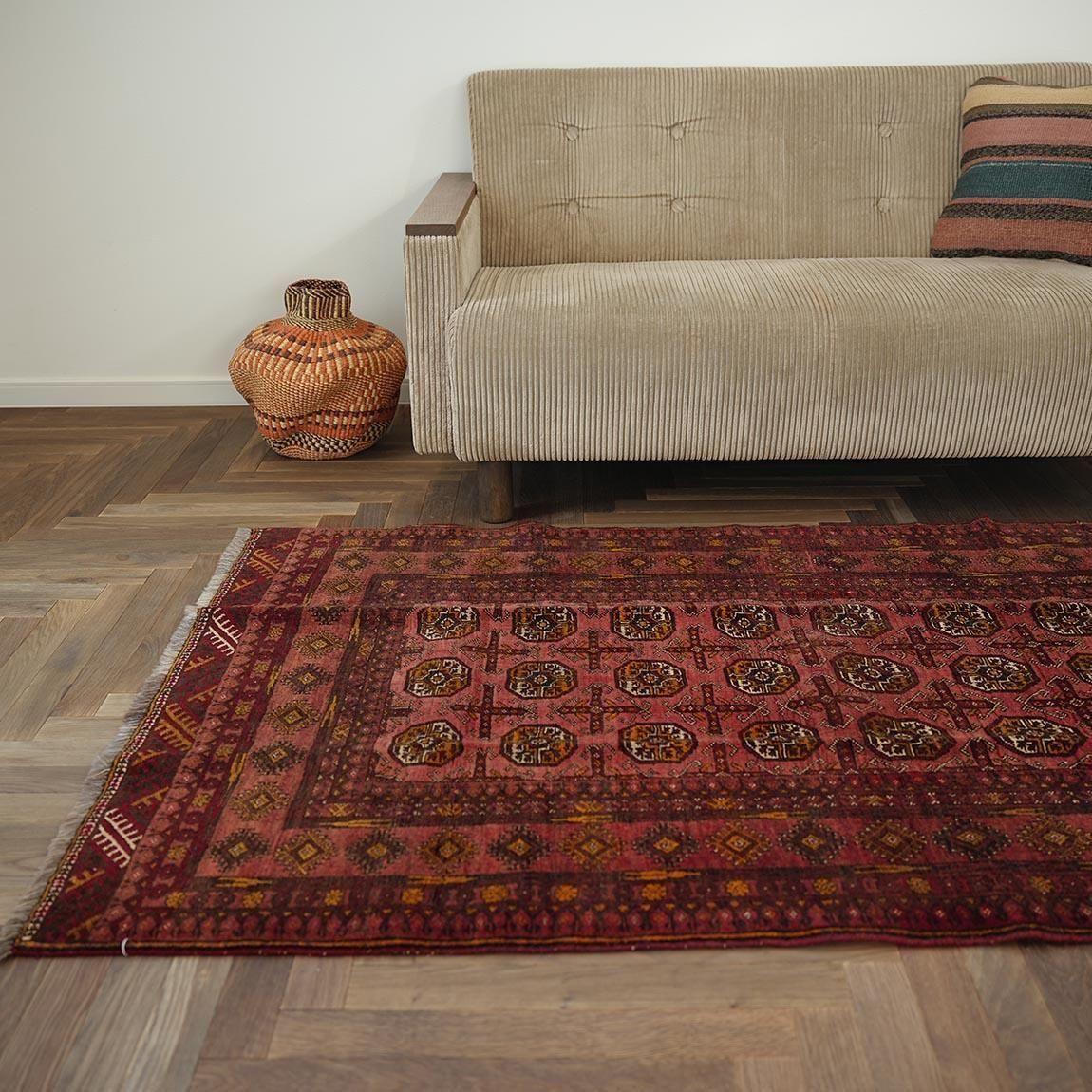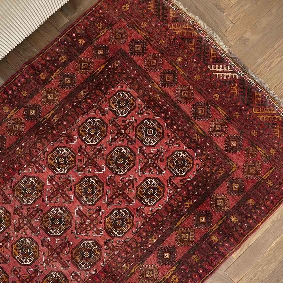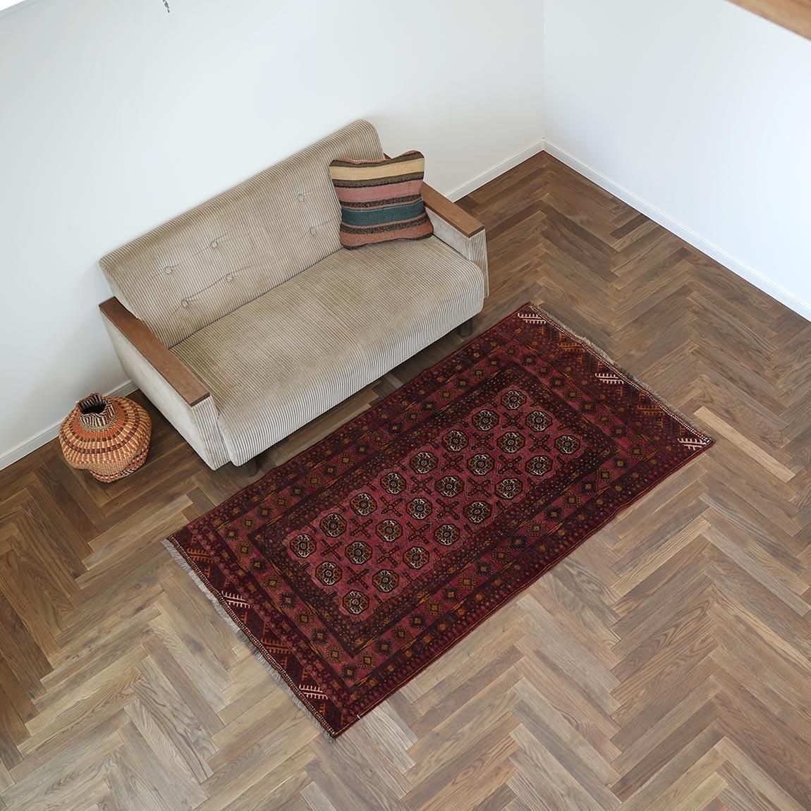 いくつもの赤を巧みに使い分け、繊細に織り上げられたトルクメンラグ。